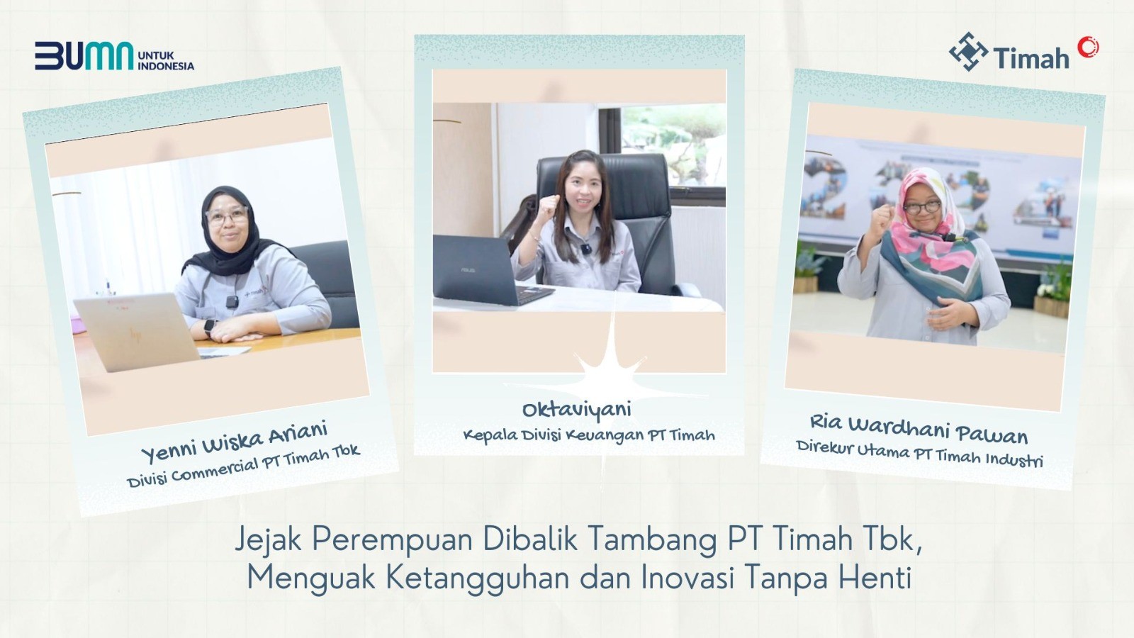Berikut inspirasi dari para pekerja perempuan di PT Timah yang telah mendedikasikan diri belasan tahun untuk perusahaan agar bisa memberikan kontribusi maksimal bagi negara dan membangun peradaban bangsa lewat sektor pertambangan.