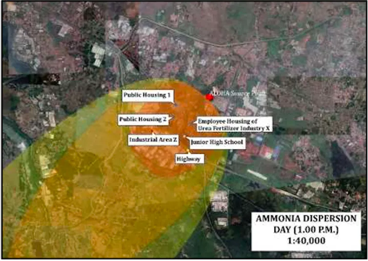 Salah satu pabrik pupuk urea di Indonesia, menurut studi, melepaskan polusi amonia ke udara dalam bentuk gas dan aerosol (uap air kecil) yang membahayakan hingga 55 ribu penduduk di sekitarnya. Dampak kesehatannya bermacam-macam, mulai iritasi kulit hingga gangguan paru-paru.
