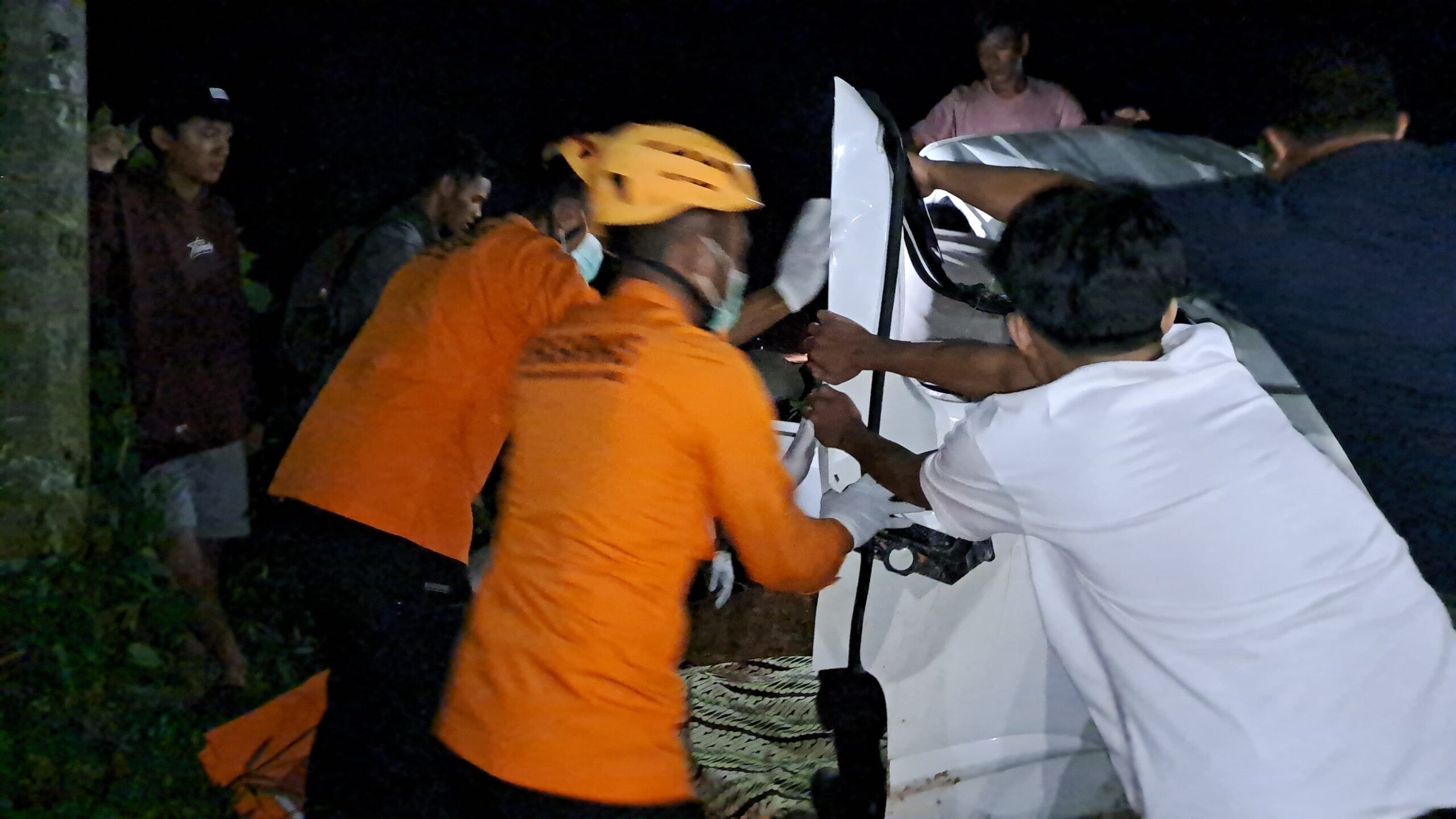 Pukul 01.40 WIB, Tim Rescue berhasil mengeluarkan tubuh korban sudah dalam kondisi meninggal dunia dengan keadaan korban yang mengalami patah tulang kaki dan diduga patah tulang leher serta mengalami luka serius pada bagian kepala.