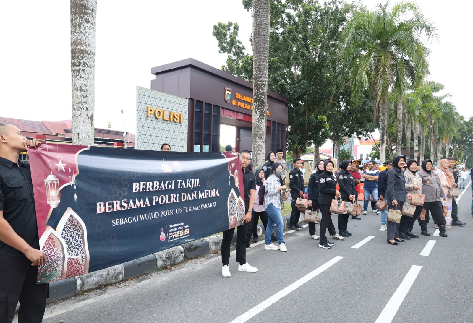 PANGKALPINANG, AksaraNewsroom.Id — Polda Bangka Belitung bersama awak media membagikan takjil untuk berbuka puasa bagi pengendara, Kamis (13/3/2025), yang juga acara keakraban bersama insan pers serupa digelar Institusi Polri se-Indonesia.