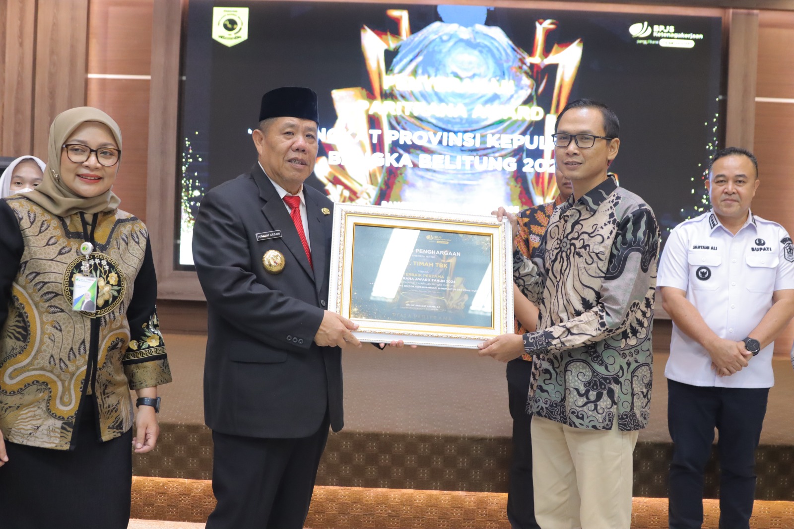 PANGKALPINANG, AksaraNewsroom.ID – BPJS Ketenagakerjaan menganugrahkan penghargaan kepada sejumlah perangkat daerah dan pelaku usaha, sebagai bentuk apresiasi pemerintah pusat yang telah mendukung penuh implementasi program jaminan sosial ketenagakerjaan. Penghargaan tersebut langsung diserahkan oleh Gubernur Kepulauan Bangka Belitung Hidayat Arsani di Ruang Pasir Padi, Kantor Gubernur Babel, Rabu( 30/7/2025).