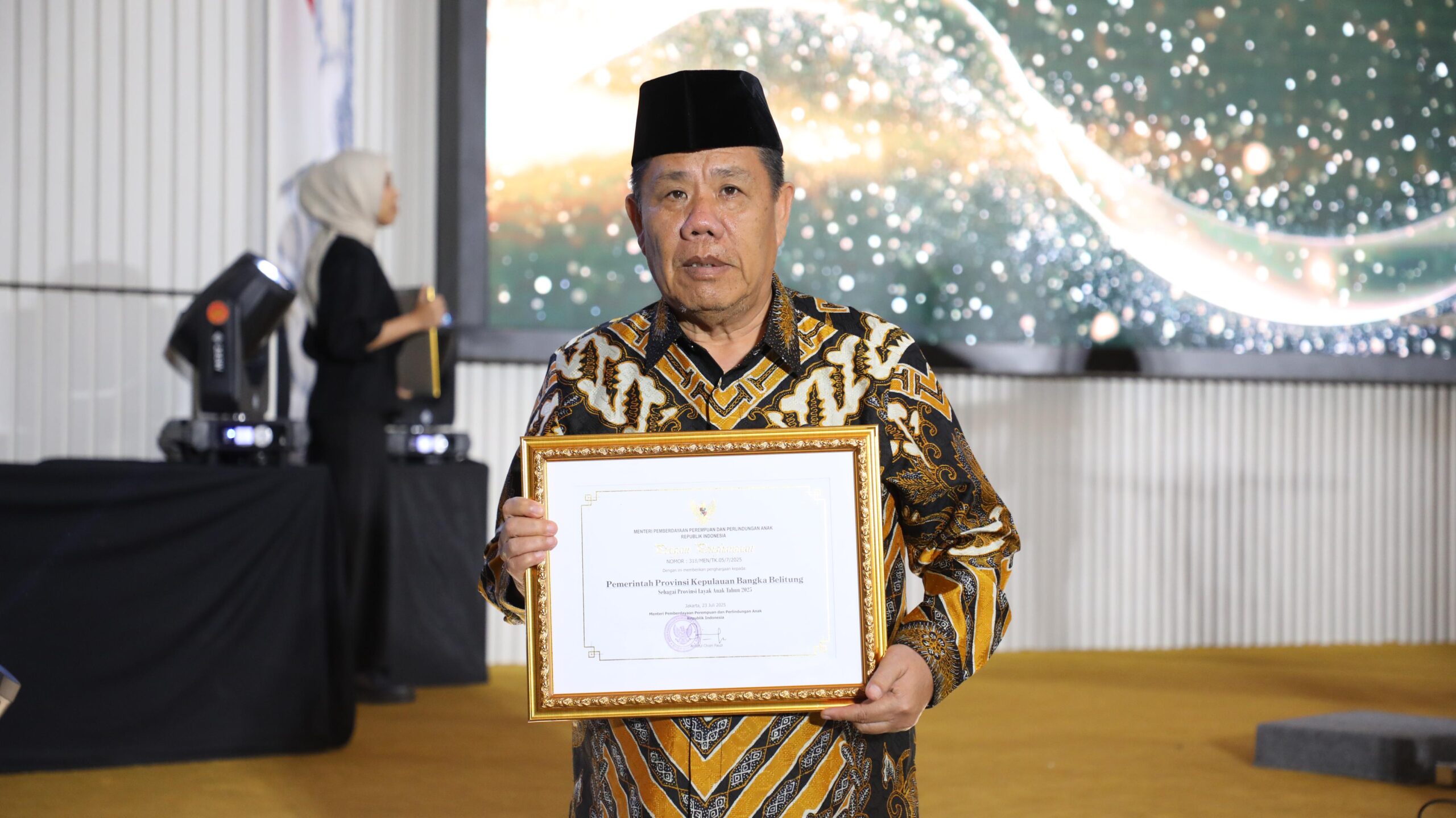JAKARTA, AksaraNewsroom.ID – Gubernur Kepulauan Bangka Belitung (Babel) Hidayat Arsani menerima penghargaan Provinsi Layak Anak pada Malam Penganugerahan Kabupaten/Kota Layak Anak (KLA) Tahun 2025 yang digelar Kementerian Pemberdayaan Perempuan dan Perlindungan Anak (KPPPA) RI.