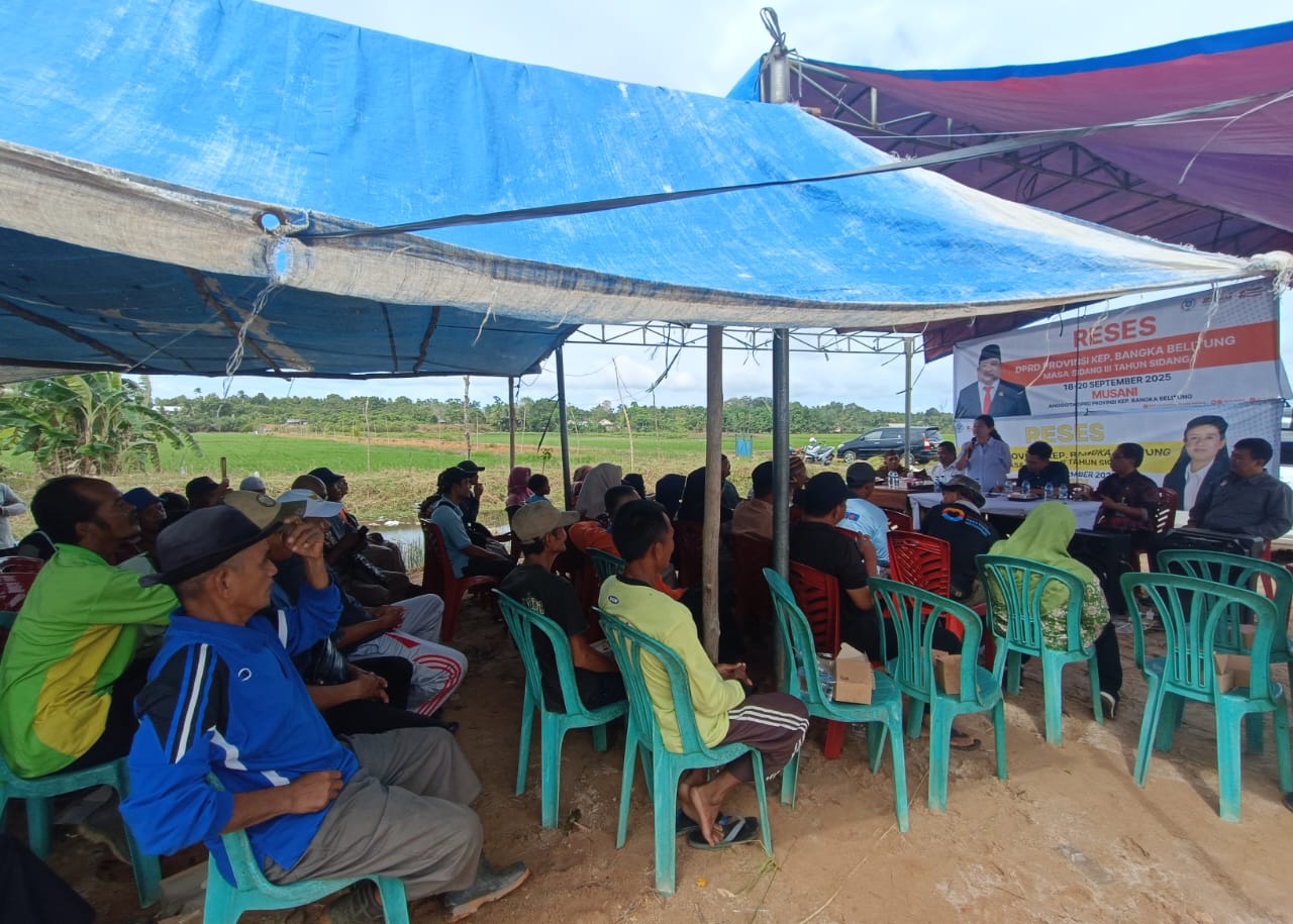 “Sawah kami bergantung dari aliran Sungai Permis. Kalau sungainya sudah digarap, otomatis air untuk sawah tidak lagi terjamin. Itu satu-satunya sumber air kami,” ungkap Agus, Rabu (17/9/2025) yang disampaikan dalam Reses Anggota DPRD Babel, Rina Tarol dan Muzani.