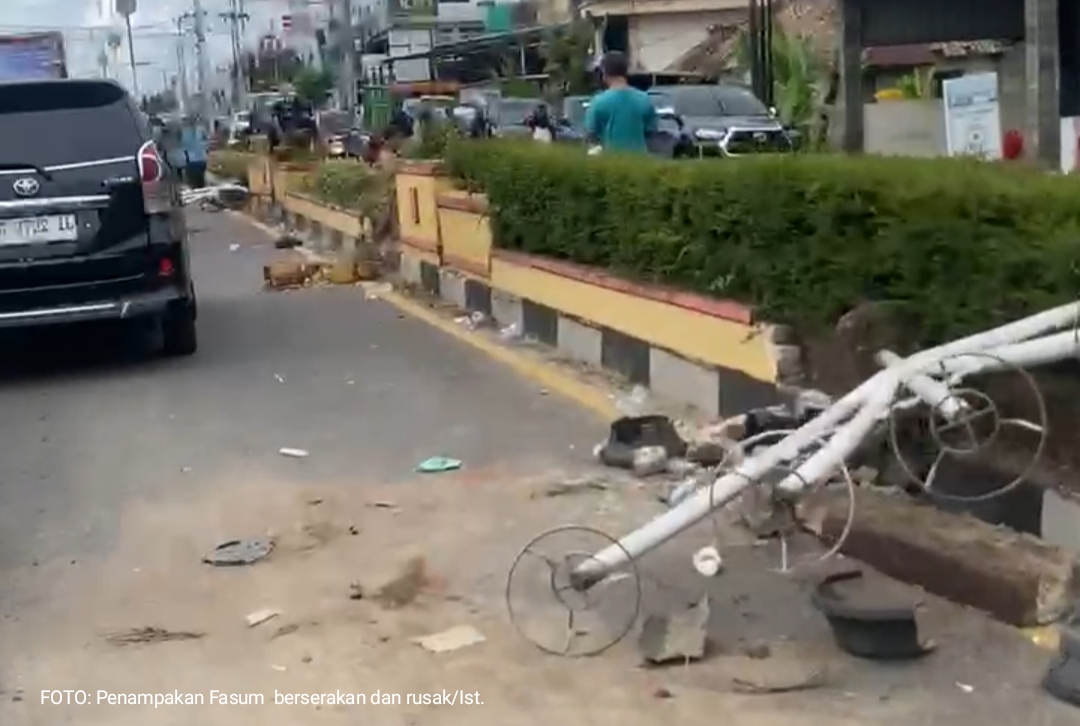 PANGKALPINANG, AksaraNewsroom.ID – Ricuhnya aksi massa penambang rakyat di depan kantor PT Timah Tbk, Kota Pangkalpinang, Senin (6/10/2025), menyisakan kerusakan tidak hanya pada gedung perusahaan, tetapi juga sarana penunjang milik umum di sekitarnya.