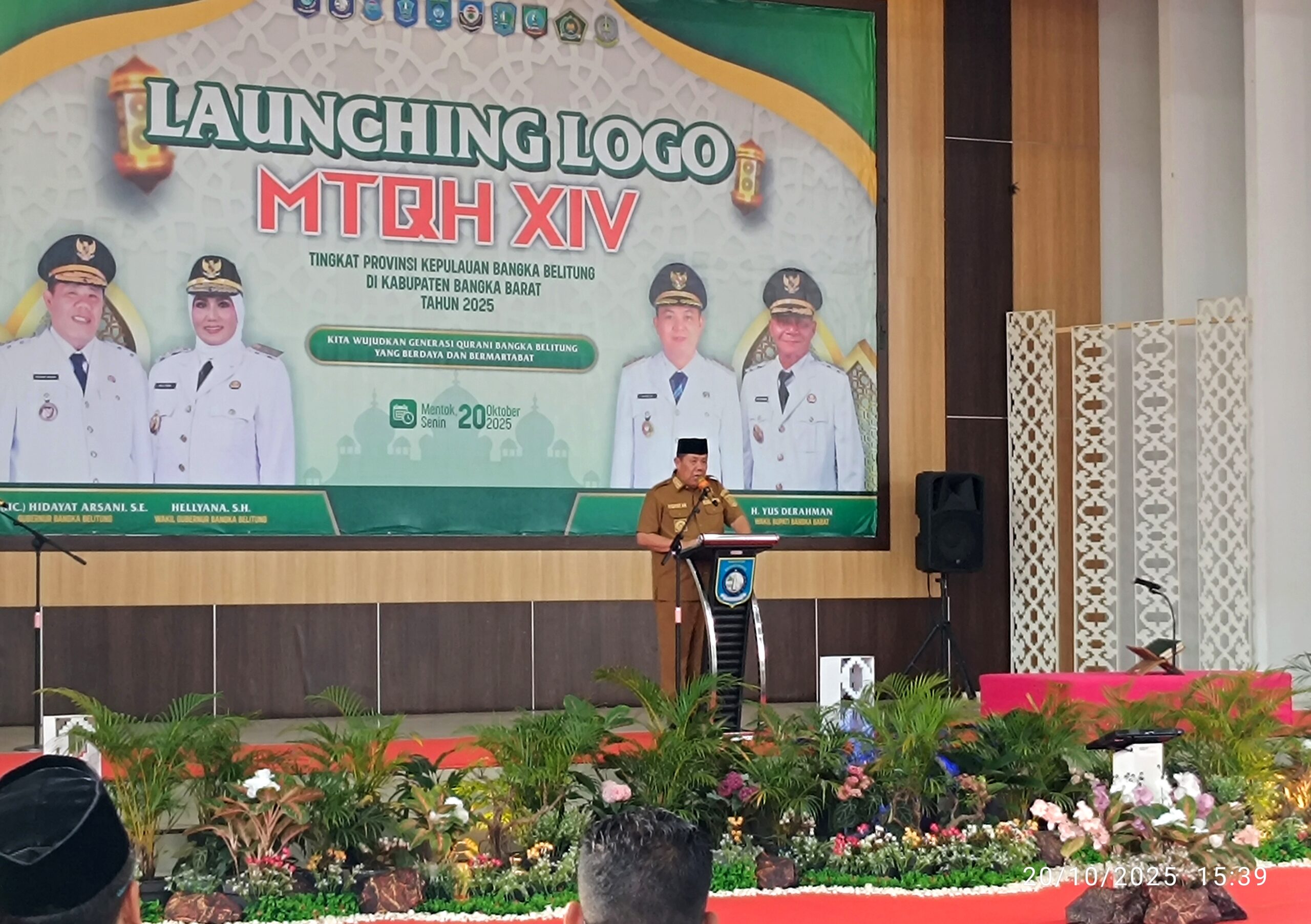 BANGKA, AksaraNewsroom.ID – Gubernur Kepulauan Bangka Belitung Hidayat Arsani secara resmi meluncurkan logo Musabaqah Tilawatil Qur’an dan Hadits (MTQH) ke-XIV Tingkat Provinsi. Acara peluncuran digelar di Gedung Majapahit Unmet, Muntok, Bangka Barat, Senin, dengan dihadiri Bupati Bangka Barat Markus dan jajaran Forkopimda.