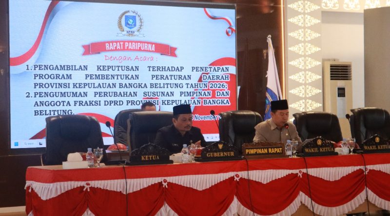 PANGKALPINANG, AksaraNewsroom.ID – Rapat Paripurna pengambilan keputusan penetapan Program Pembentukan Peraturan Daerah (Propemperda) Provinsi Kepulauan Bangka Belitung (Babel) tahun 2026.