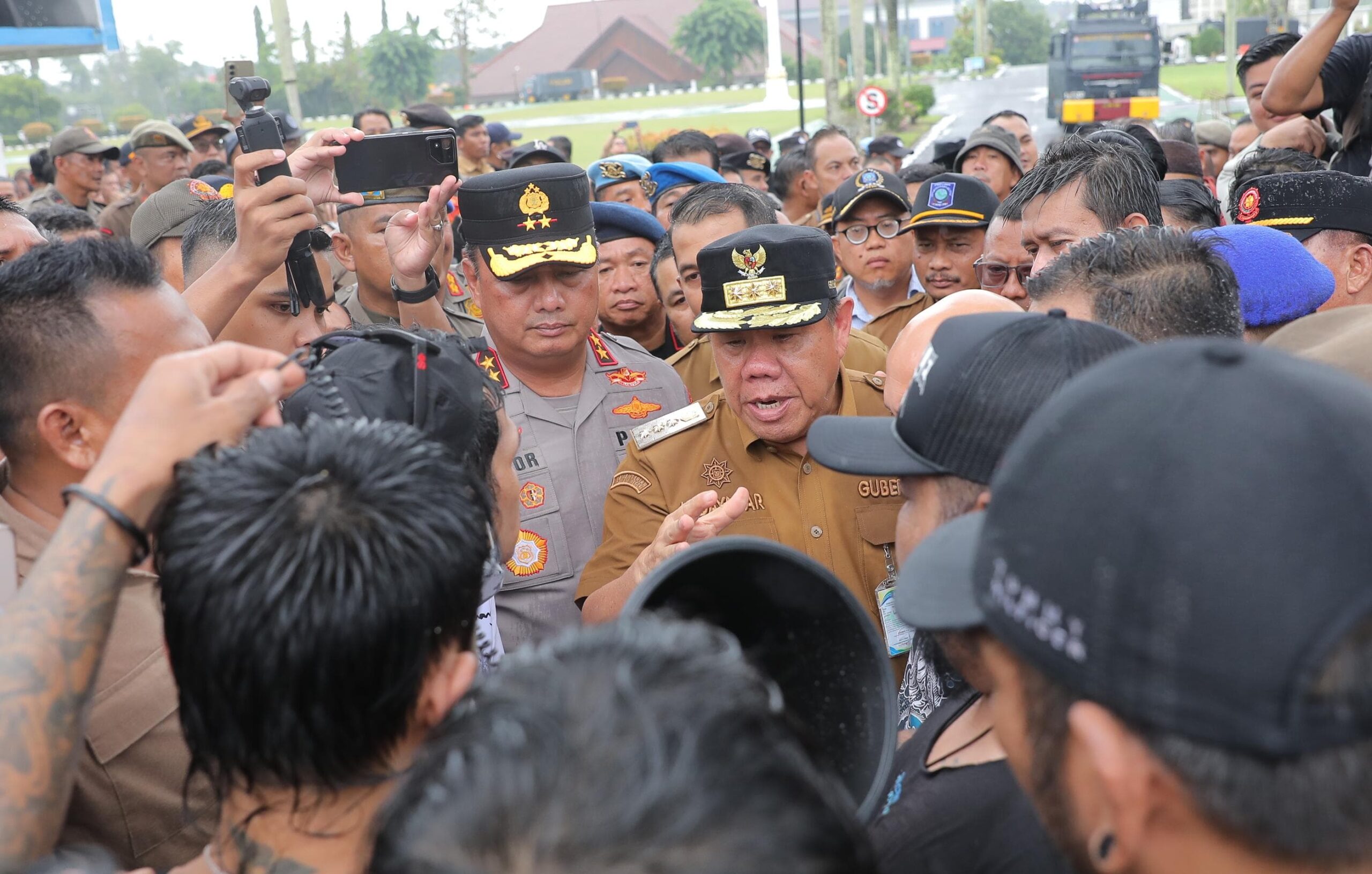 “Ke depan mari kita duduk bersama, berdialog tanpa harus turun ke jalan. Kita cinta damai, cinta rakyat. Setiap persoalan pasti ada jalan keluarnya,” ujar Gubernur Hidayat Arsani.