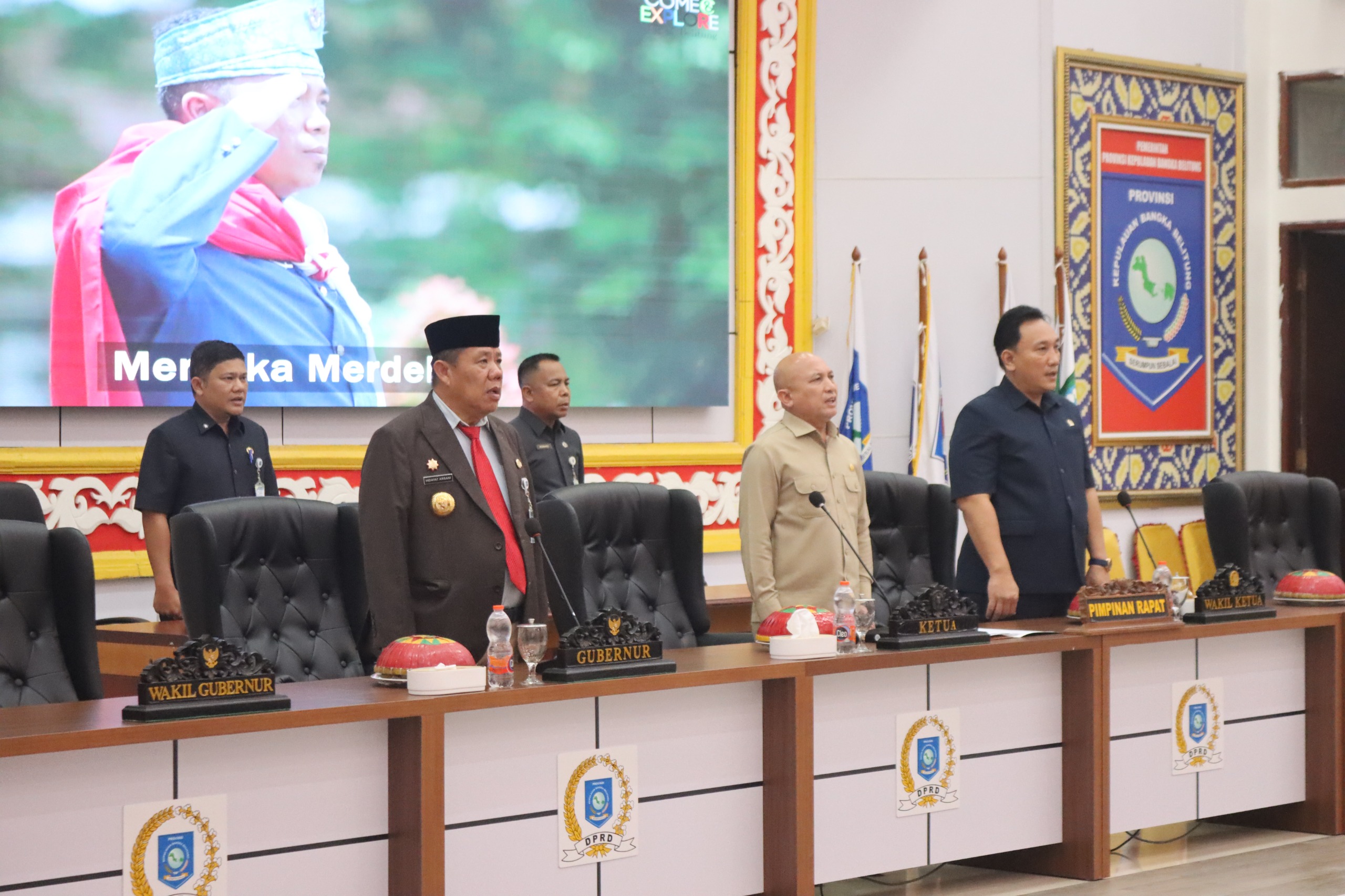 Rapat paripurna dipimpin Ketua DPRD Provinsi Kepulauan Bangka Belitung Didit Srigusjaya dan dihadiri unsur Forkopimda, pimpinan dan anggota DPRD, pejabat instansi vertikal, pejabat struktural Pemprov Babel, serta insan pers.