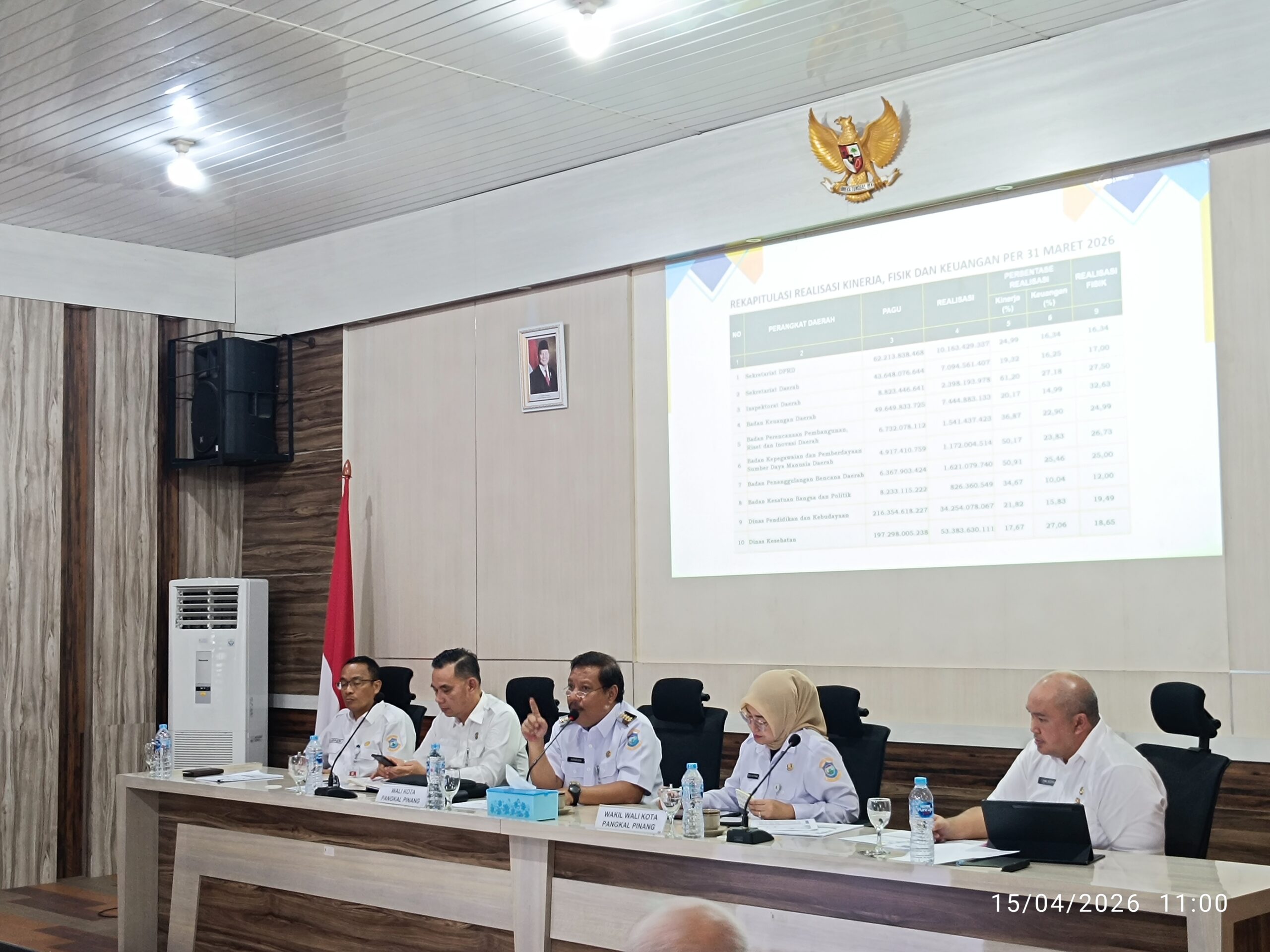 PANGKALPINANG, AksaraNewsroom.ID – Pemerintah Kota Pangkalpinang menggelar rapat koordinasi evaluasi kinerja fisik dan keuangan Anggaran Pendapatan dan Belanja Daerah (APBD) hingga Maret 2026 di Ruang Pertemuan Bapperida Pangkalpinang.
